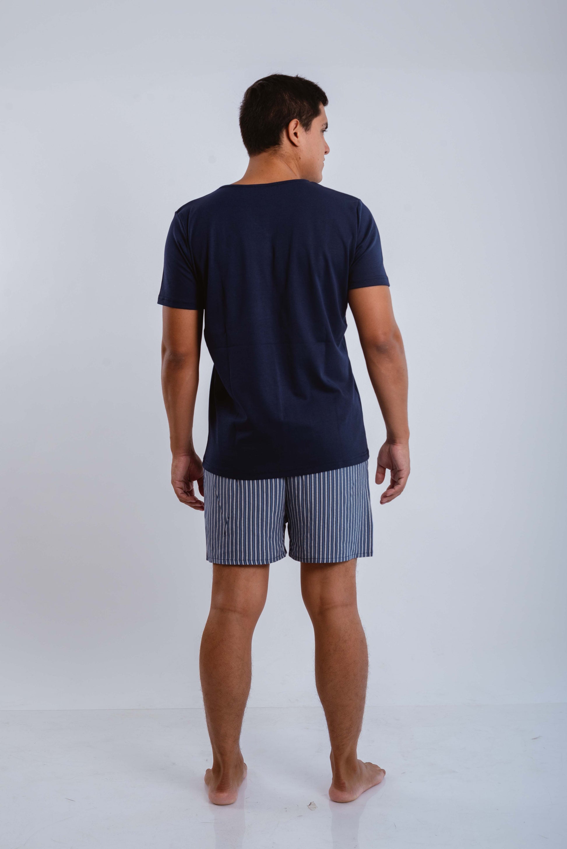 Descubre el equilibrio perfecto entre suavidad y frescura. Este conjunto combina un short de rayón en tonos grises y azules, ligero y cómodo, con un polo de algodón pima azul que ofrece suavidad y estilo.