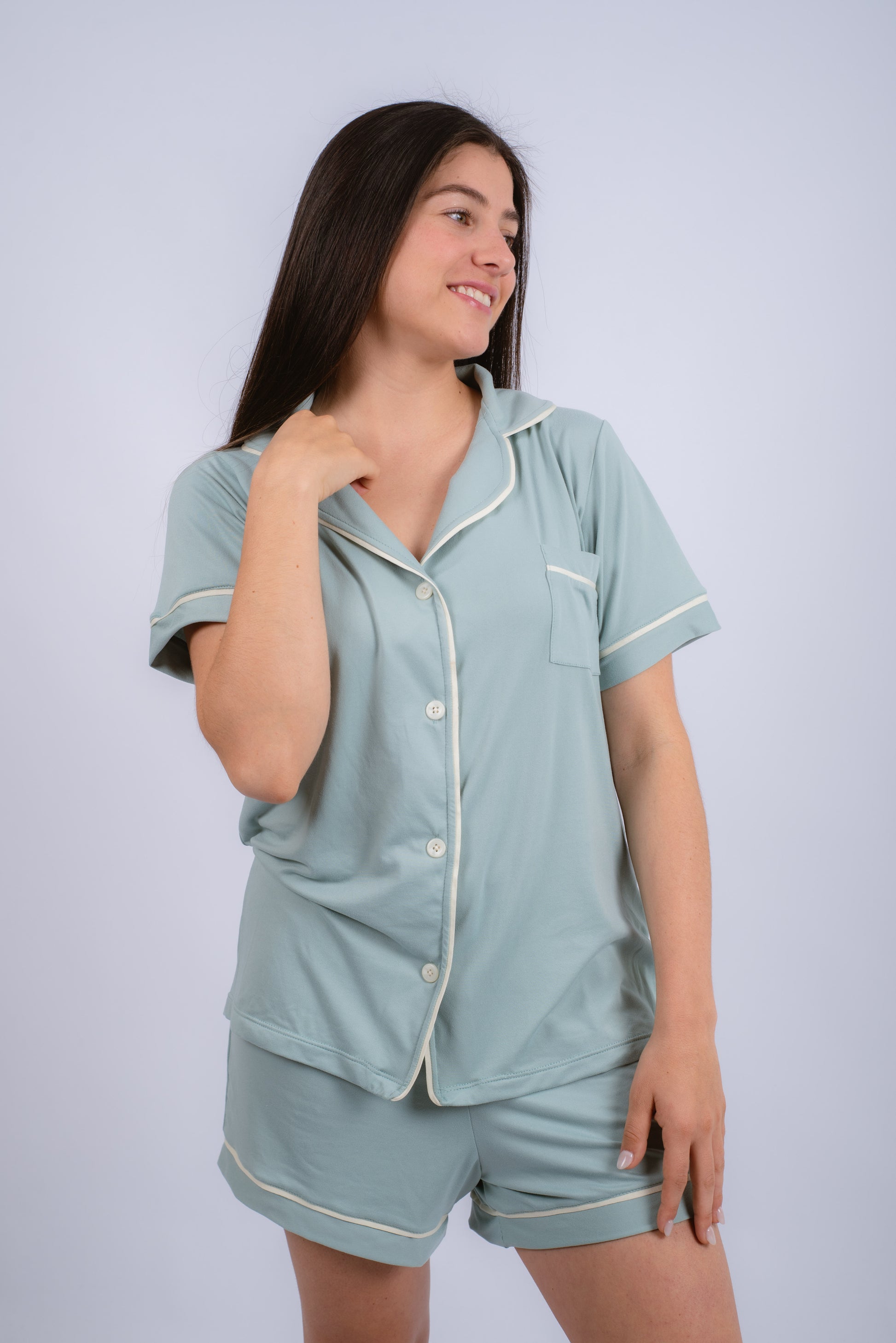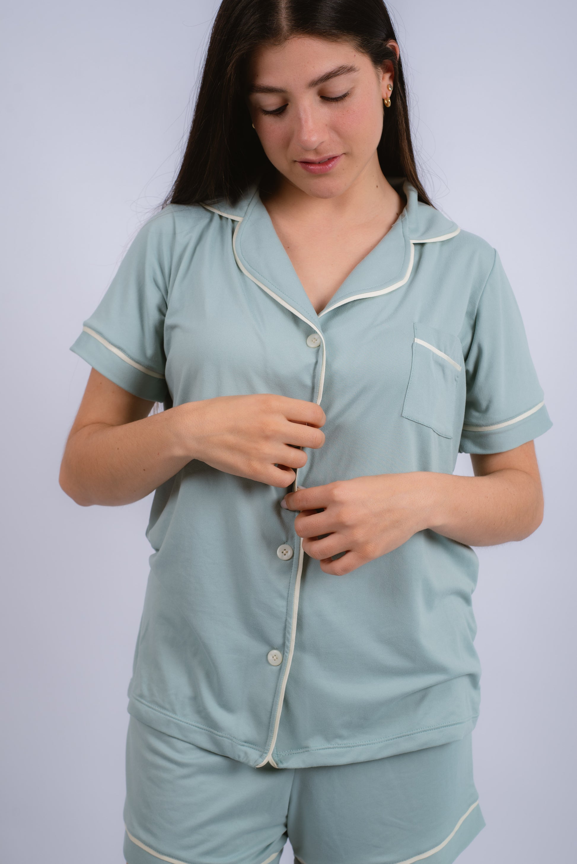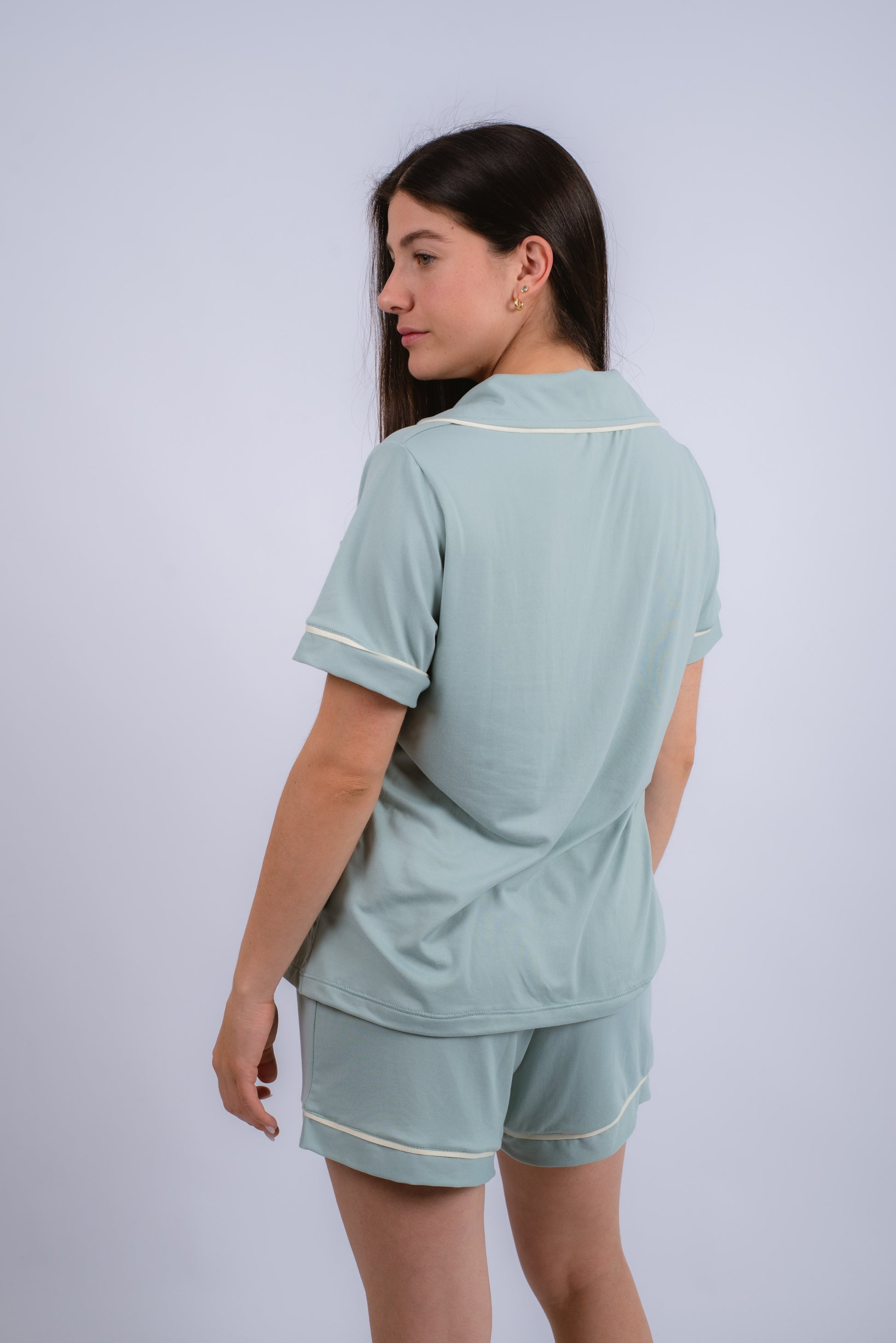 En un delicado tono celeste, este conjunto evoca la suavidad y ligereza de un cielo despejado, brindando un estilo fresco y etéreo.