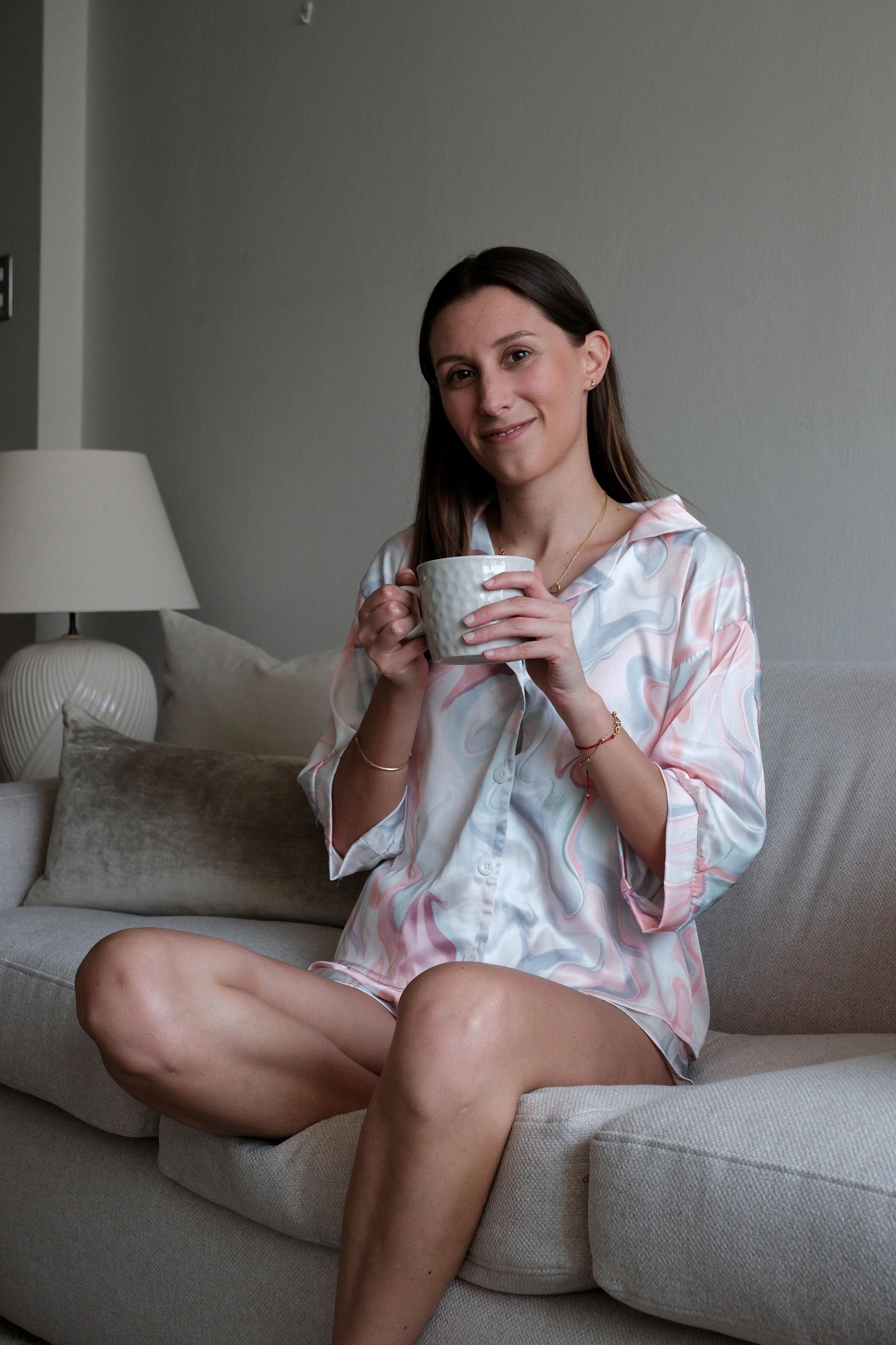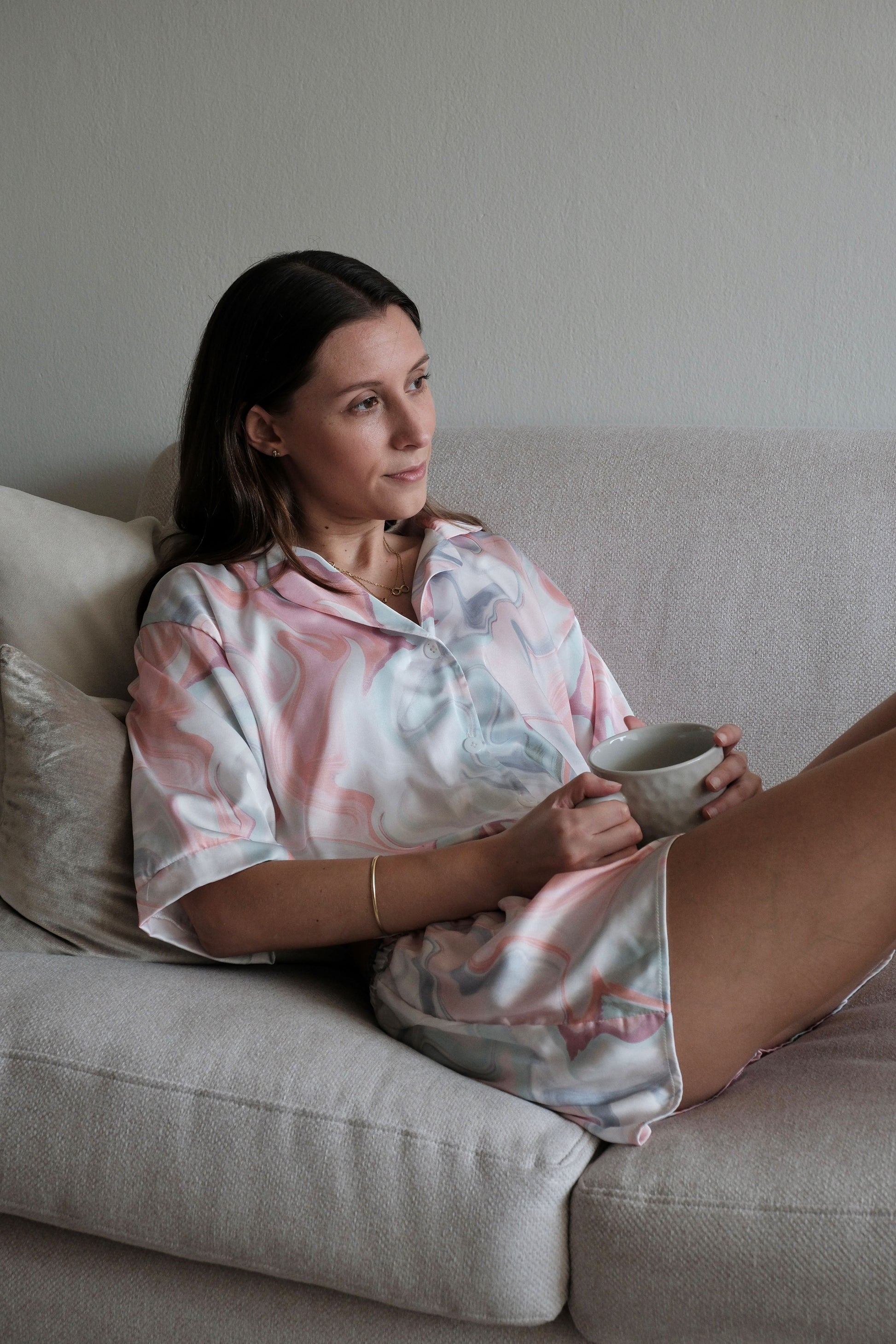 Un diseño que captura la esencia de un atardecer sereno, con suaves tonalidades en movimiento que evocan calidez y elegancia.